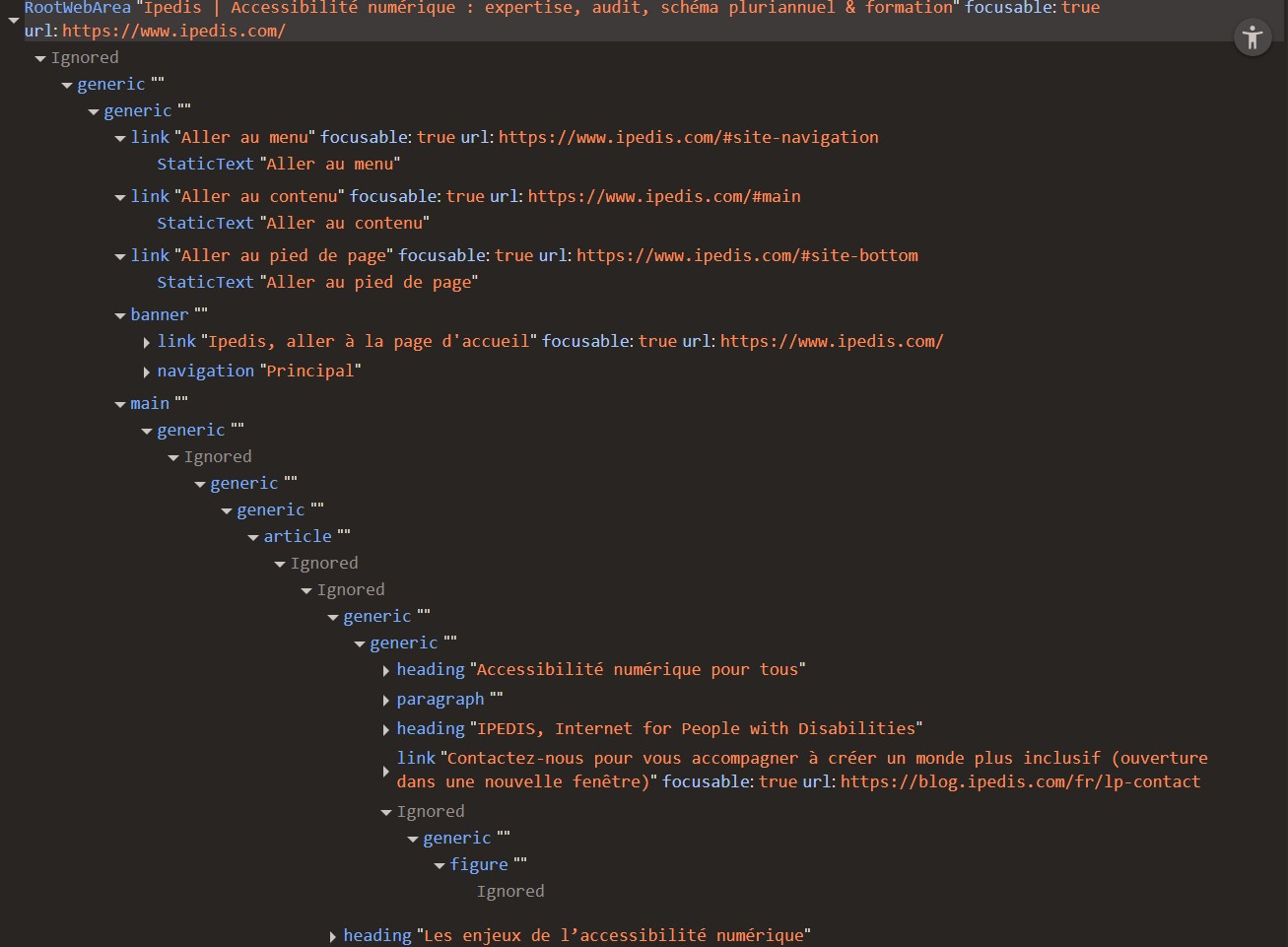 Voici un point essentiel : c’est la seule manière de vérifier que le libellé accessible est correct. Ce que vous voyez à l’écran n’est pas toujours ce que le lecteur d’écran annonce.