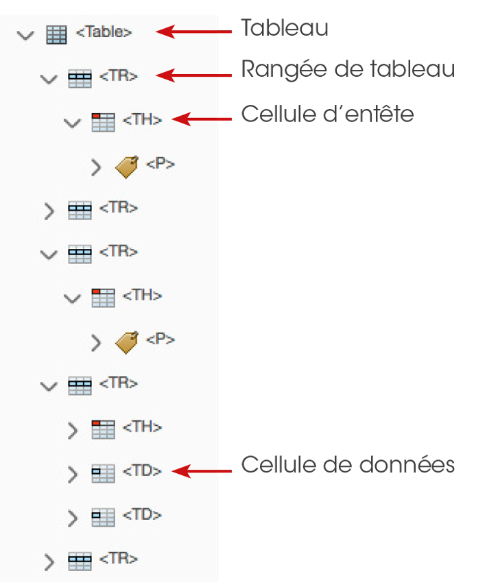 Sélectionner la balise TABLE dans la fenêtre des balises, clic droit > éditeur de tableau. Il convient de définir le type de cellule et ses attributs afin de faciliter la compréhension du tableau.
